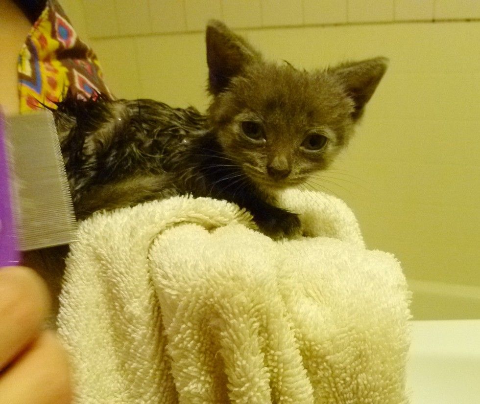 The two kitten sisters had goopy eyes, parasites and fleas, but they were so happy to be away from the flood waters and safe in a home.