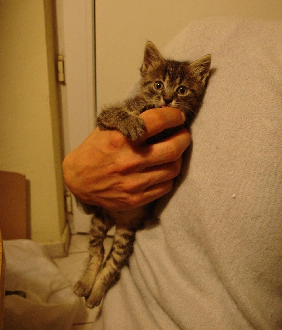 The tiny kitten somehow got lost and separated from her mother and had been in the freezing weather for quite some time that she was found half frozen and barely moving.