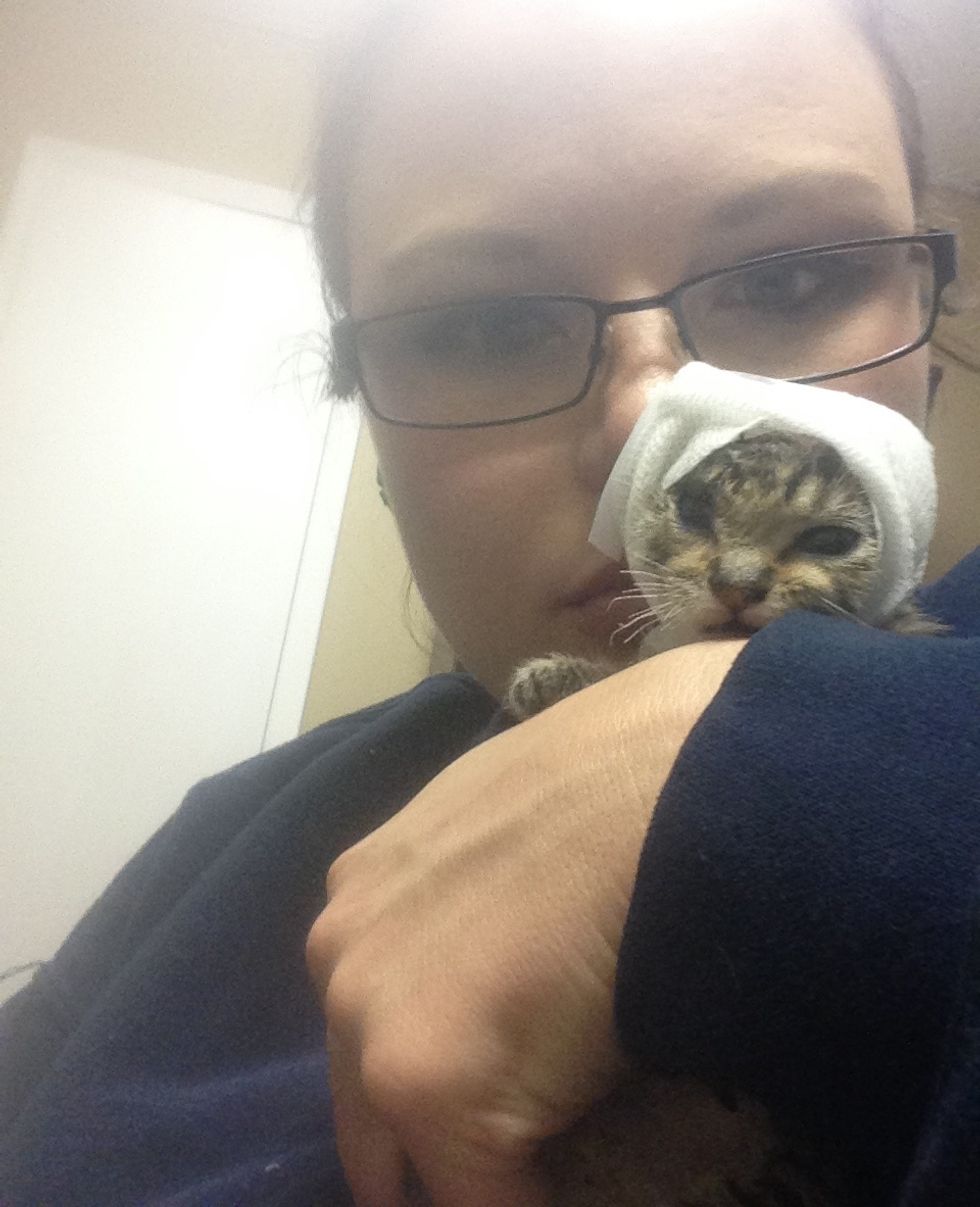 But despite it all, the tiny kitten was in good spirits. He snuggled in Jessie's lap for cuddles and love. "He doesn't know there is anything wrong... He is a very special boy."