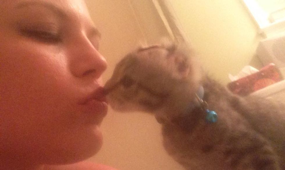 After applying some antibiotic cream, the little guy felt so much better and gave his human a few nose kisses as if he was saying, "Thank you."