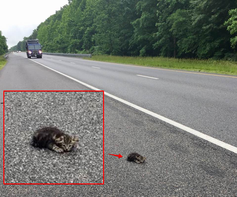The kitten was lying on the side of road motionless. Christina knew that she had little time to save him from the traffic.
