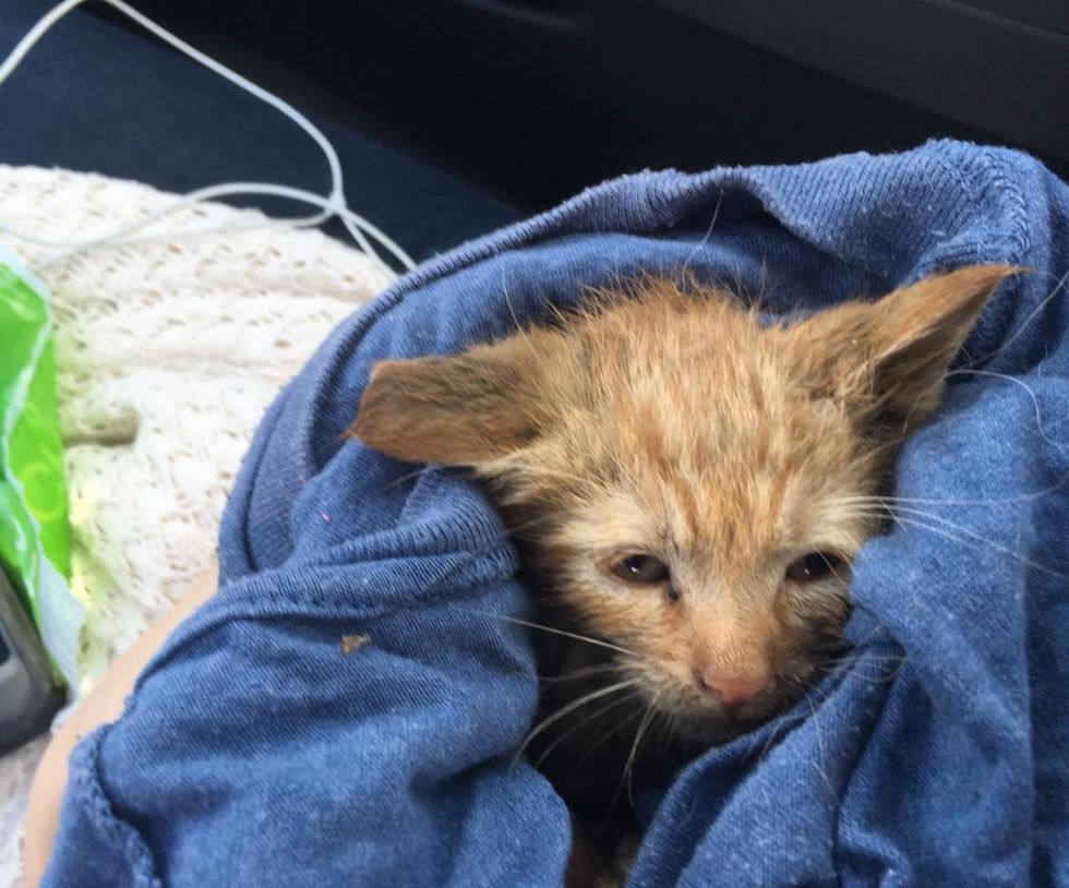 Initially, Katie was going to get him help from a local no-kill shelter, but since it was holiday (Labor Day) and no rescue group was open, she drove the kitty home and decided to foster him.