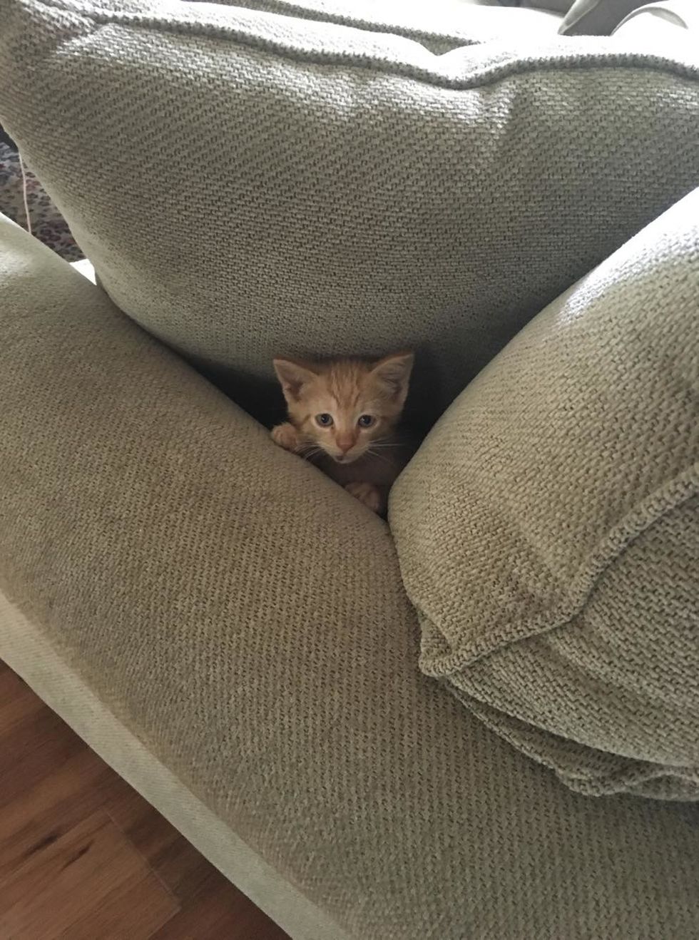 While they were brainstorming names, the sweet kitten crept his way into their hearts. "My father realized in that moment that there was no way we could give him away."