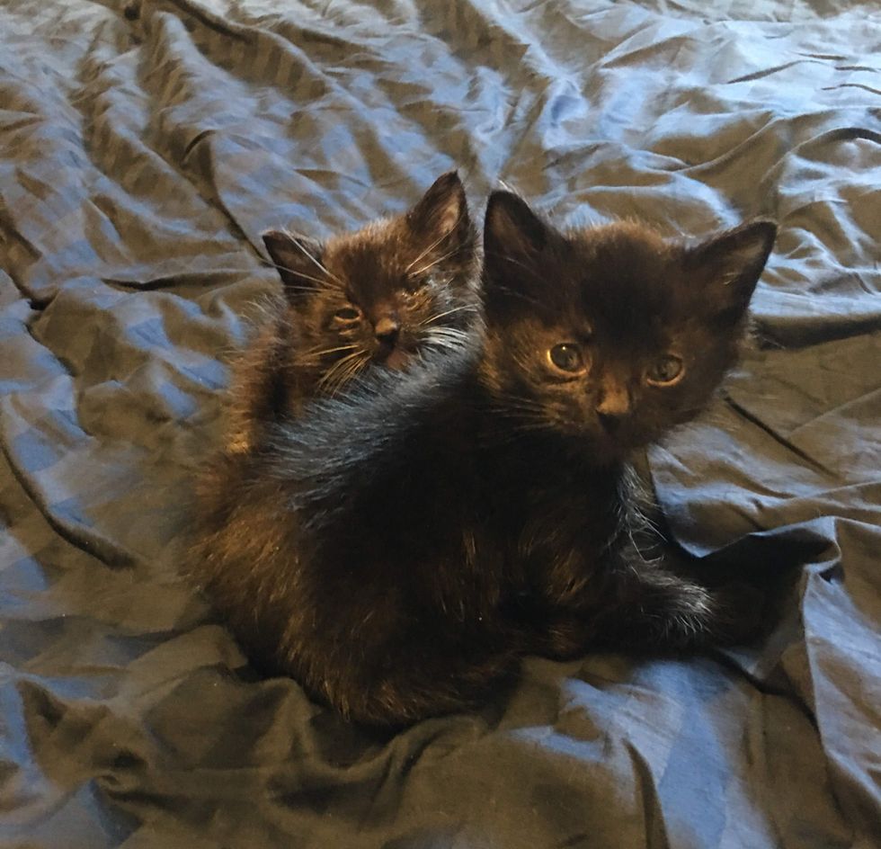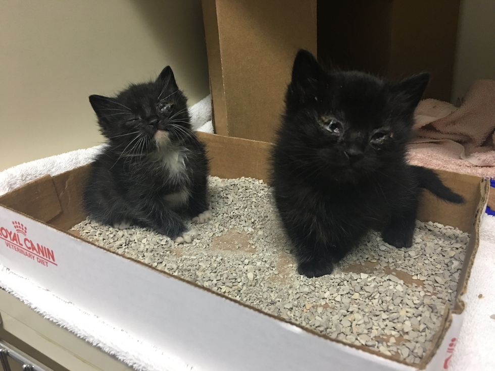 Two little black kittens were brought into an animal clinic, in desperate need of help. A woman who worked there, offered to foster them while others had given up.