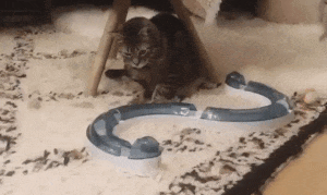 Ollie found a toy that he enjoys playing.