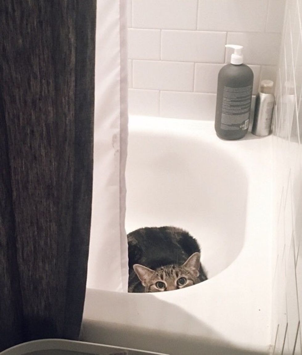 By the time she went back to check on him, Ollie had packed himself into a tight hiding spot underneath the cabinet and refused to come out.