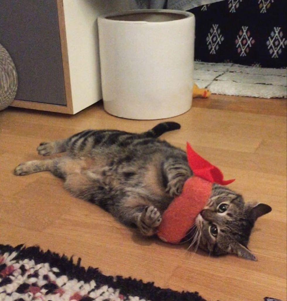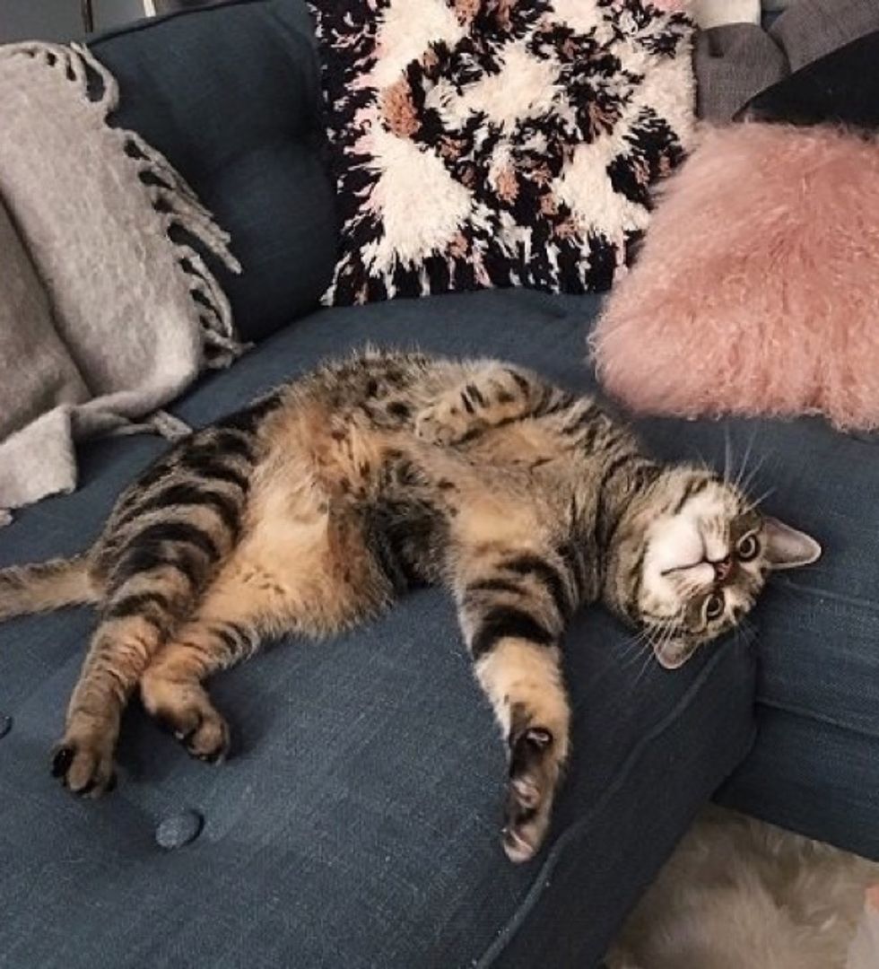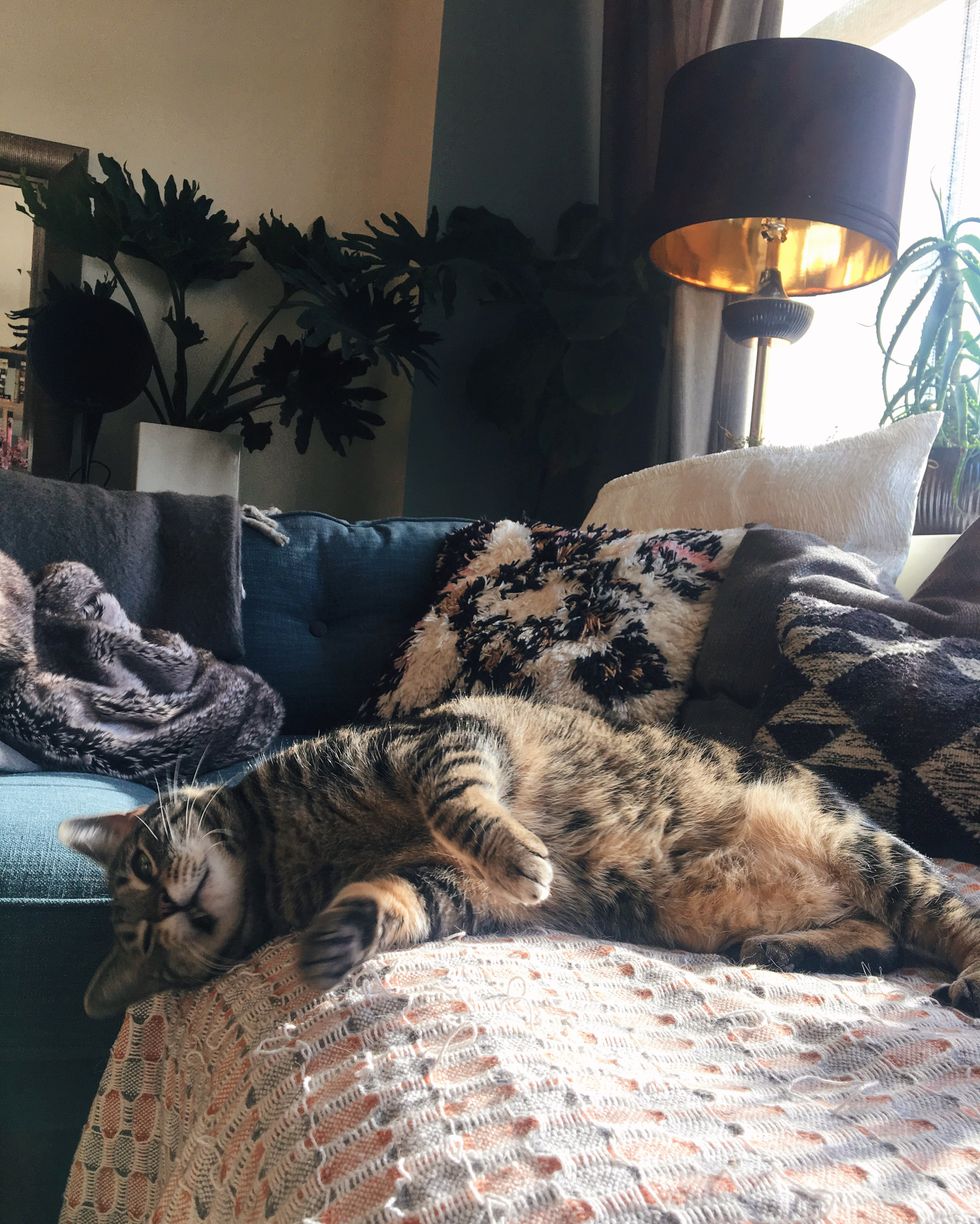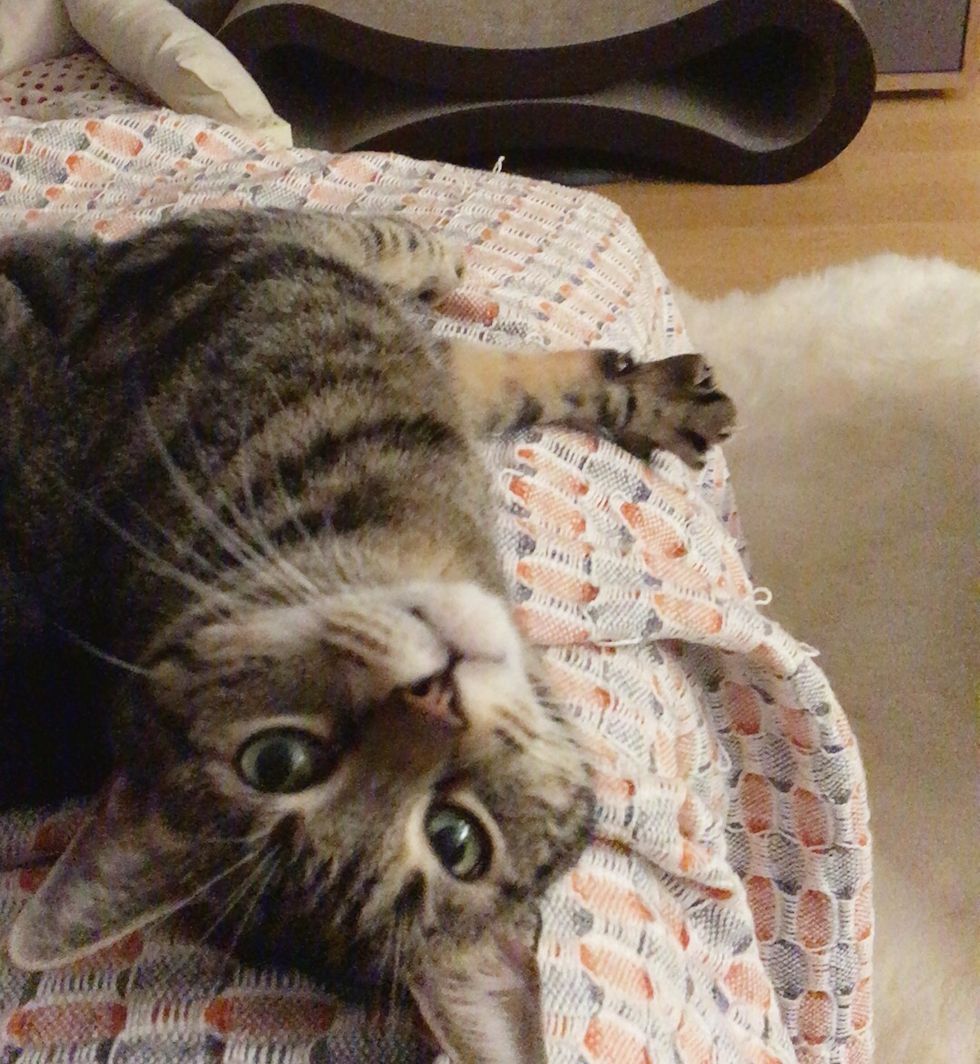 "He loves rolling around on the sofa, and he loves staring out my window at everything outside. He gives me headbutts every day when I come home from work, and he LOVES belly rubs."