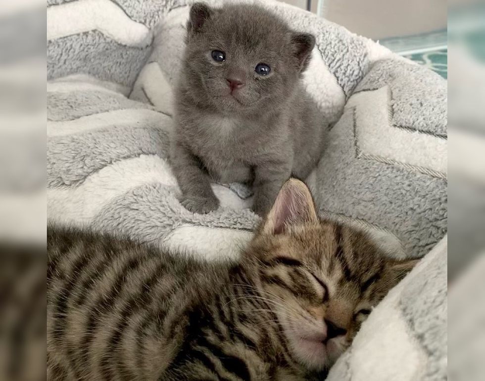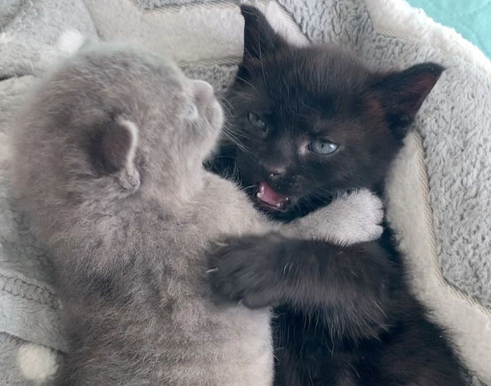 A tiny orphan kitten is so happy to have a warm home and new foster siblings to grow up with.