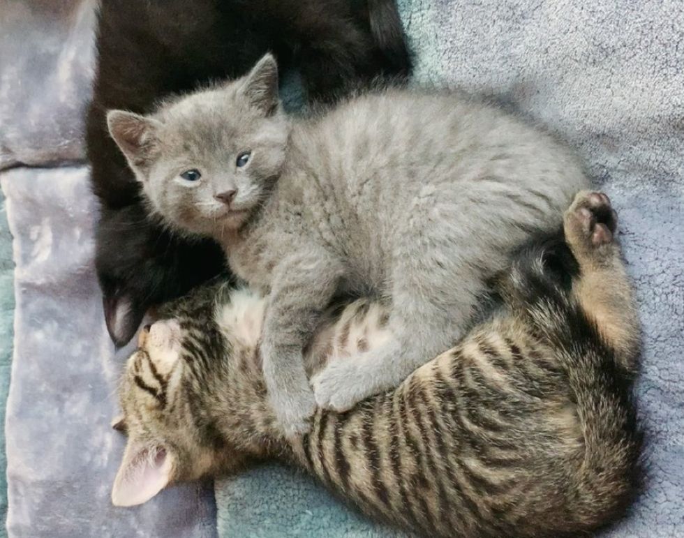 Despite a rough start, the tiniest kitty is loving his new life with his feline friends. In a few more weeks, they will be big enough and ready to look for forever loving homes.
