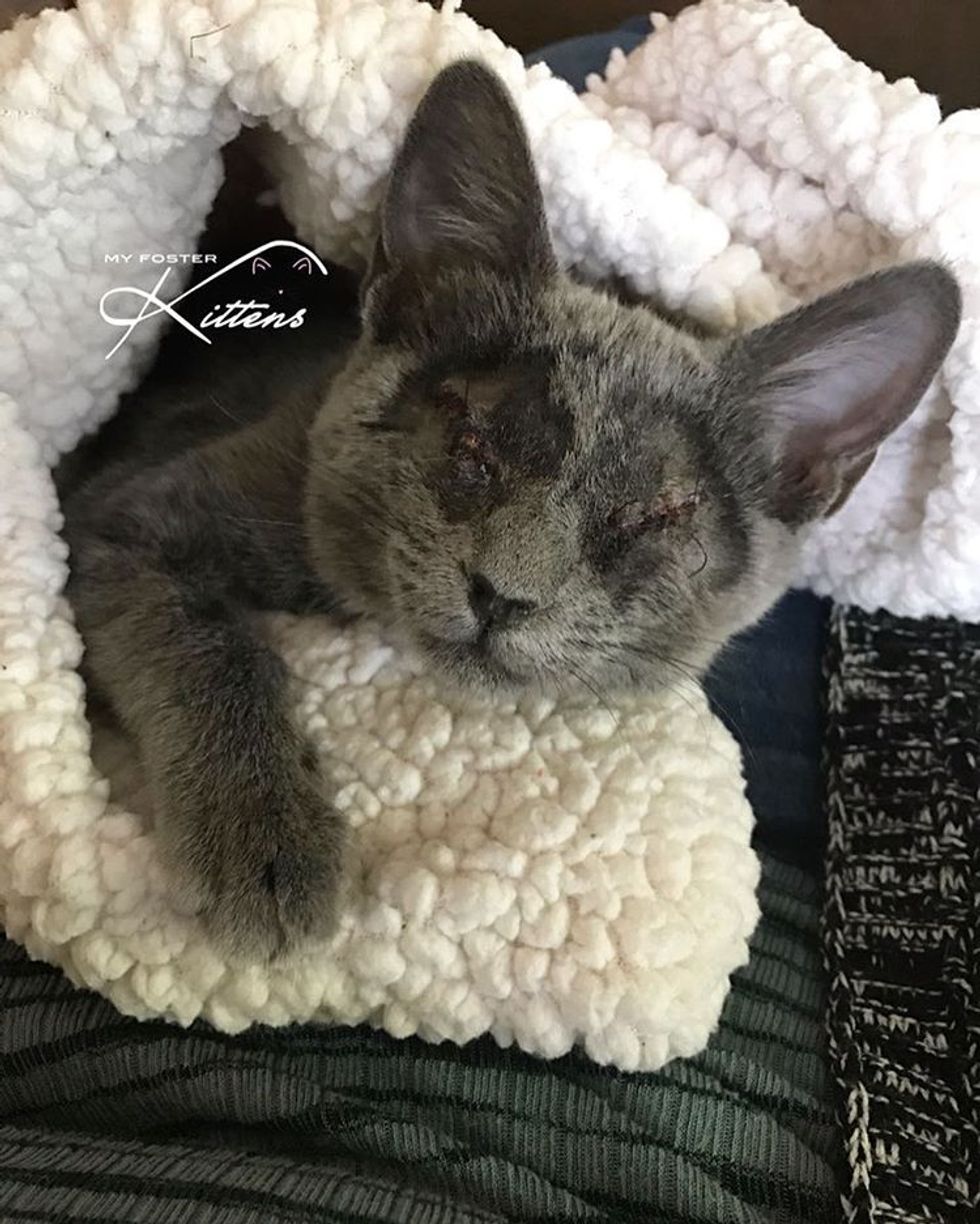 "Stella had a surgery to clean out her eye sockets from infection and her eyelids were surgically shut to prevent debris and further infection from forming," Nikki told Love Meow.