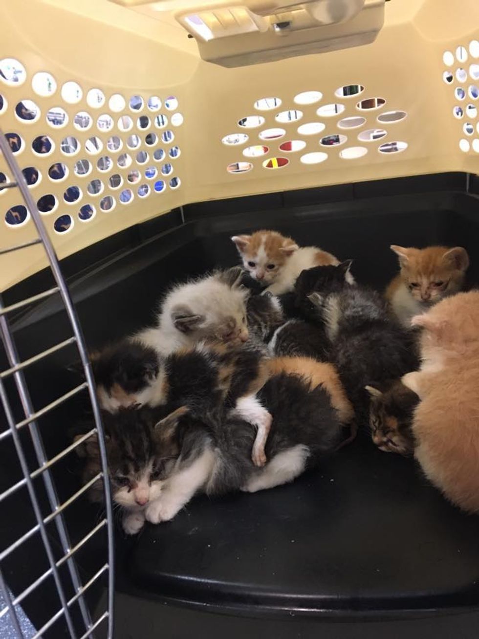 When rescuers of Richmond Animal Care and Control went to pick up kittens left behind in a yard, they were shocked to find 14 tiny fur babies hiding in the bushes.