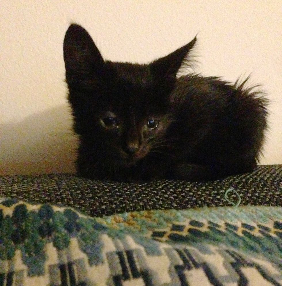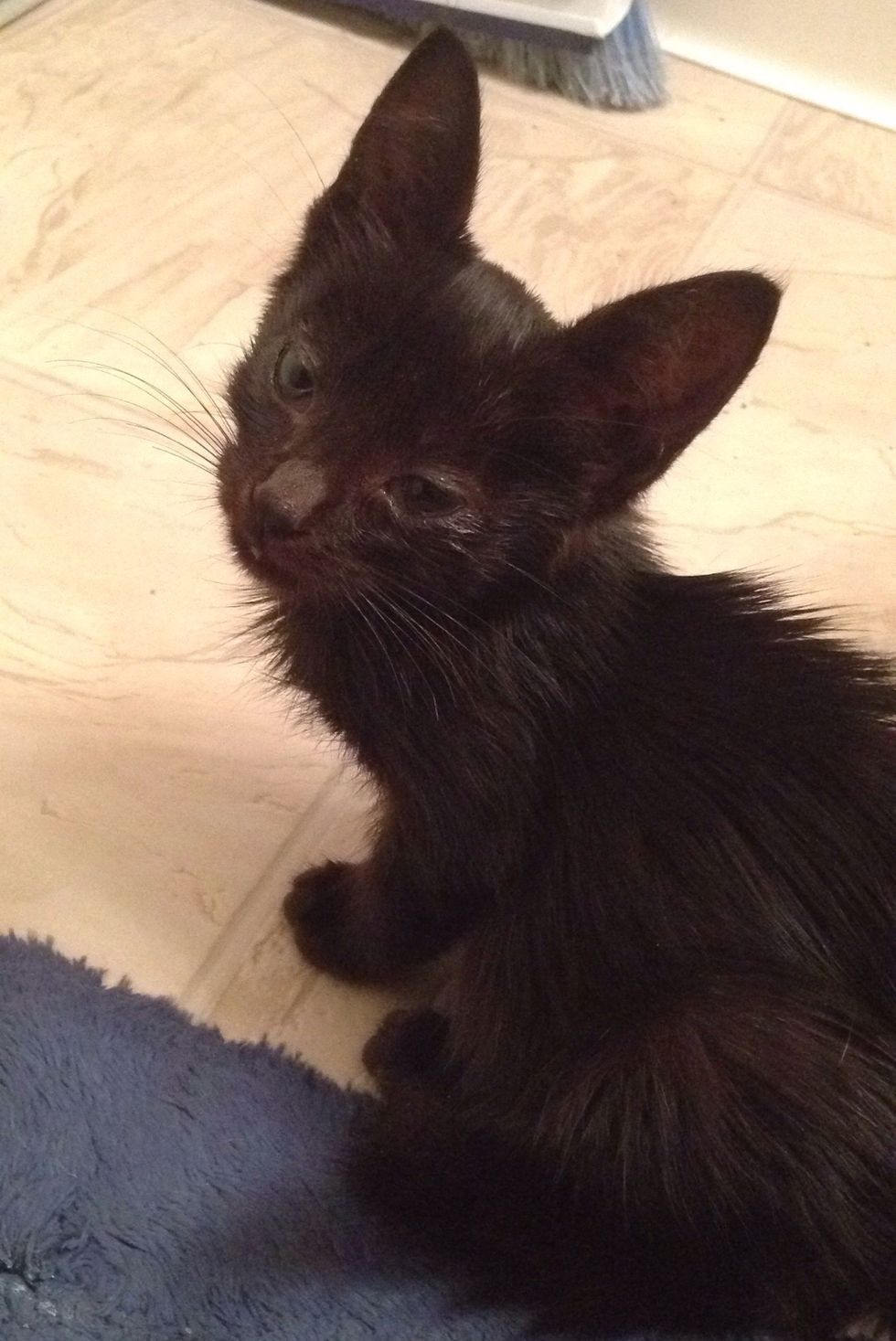 The kitten came with infections in her eyes, but the vet techs at the animal hospital got her liquid antibiotics and an ointment, so CaroLion4 could treat her at home. It was an around-the-clock effort, but so worth it.