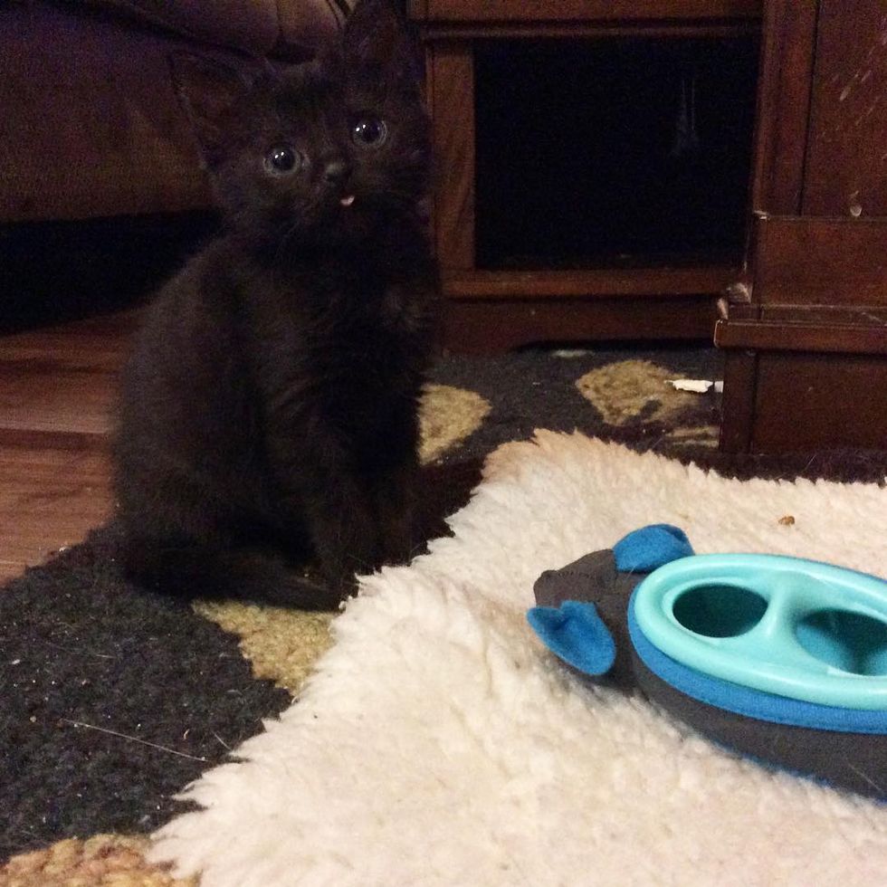 She was only half the size of a normal newborn kitten when she was brought to the clinic. Ellen Carozza LVT took the little fur baby in to foster as she needed special care due to her age and size.