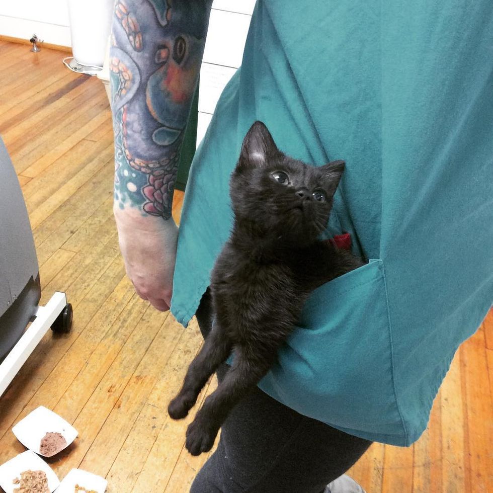 She loves to be held and likes to stay in the pocket to be carried around when her human is at work.