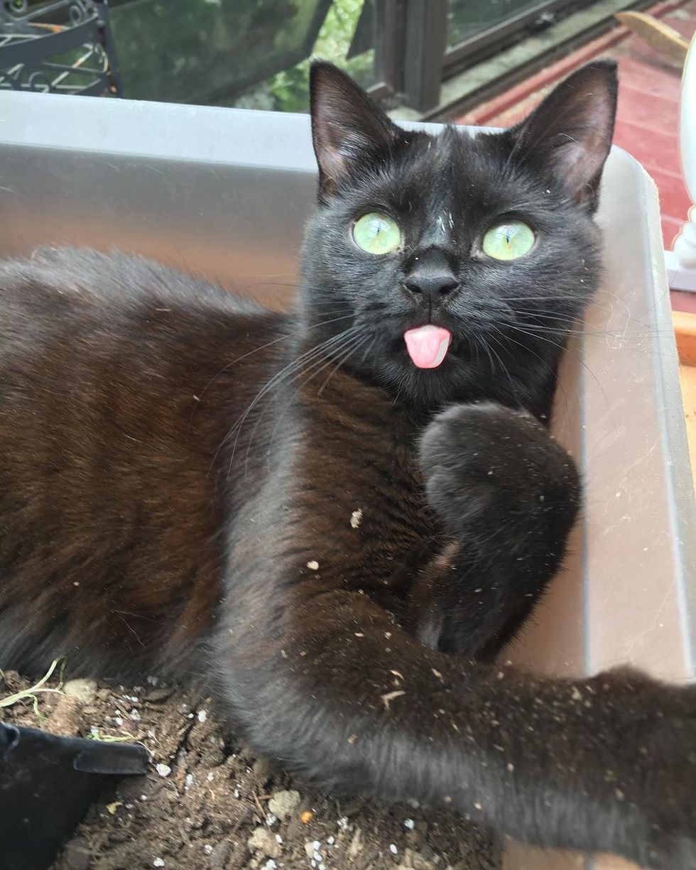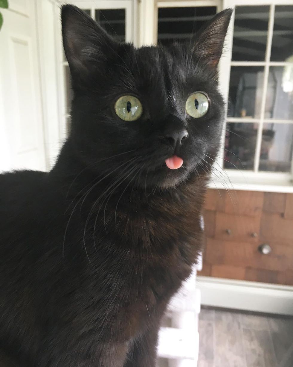 Whenever she's happy or just wants some attention, Winifred shows off her little blep. "She is a pro at sticking her tongue out! She did this since being a small baby and we laugh each time she still does it!"