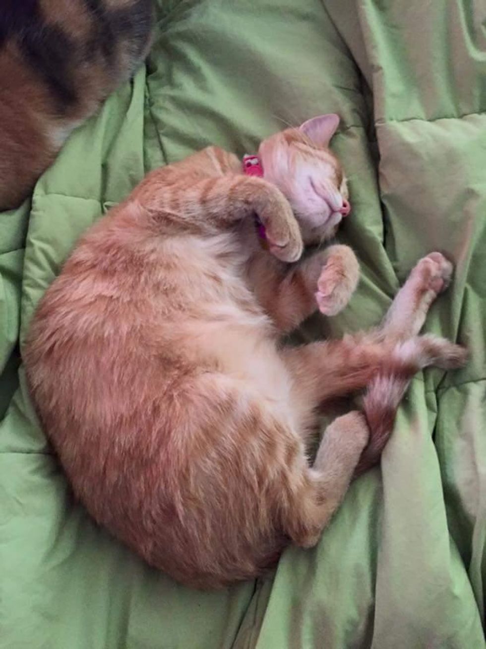 Soon the sweet ginger girl figured out how to climb up on her human's bed. "She became my little shadow, following me everywhere she went and sharing the abundance of love she had to give."