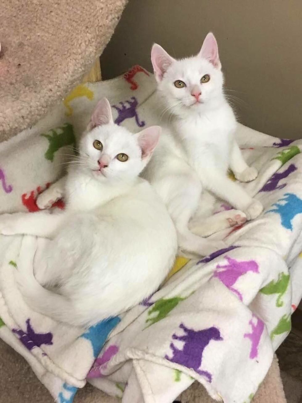 After they settled into the adoption center, shelter staff quickly noticed that the three white kittens were inseparable.