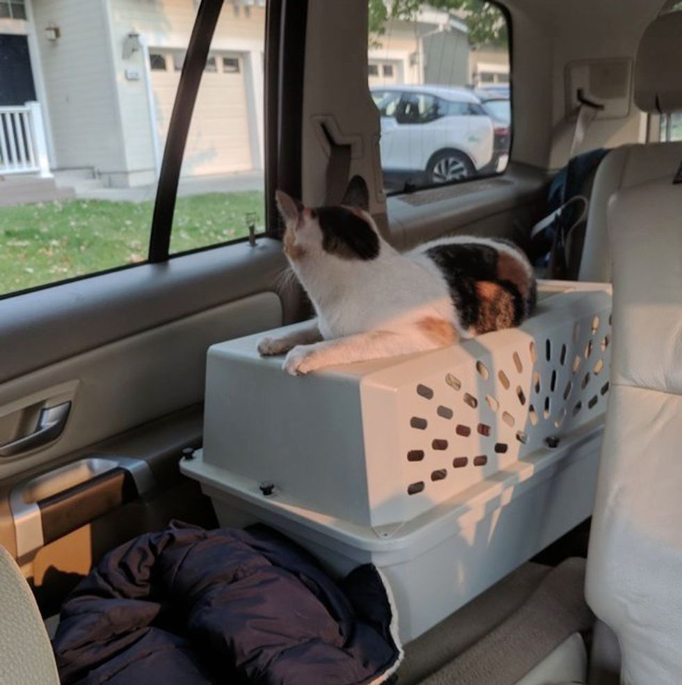 Kitty Kitty Star on her way to a temporary stay until they rebuild their new home.
