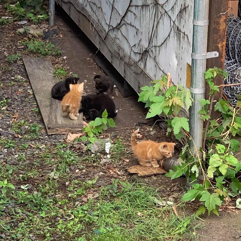 Workers at a mechanic shop discovered a litter of kittens under an old trailer and knew they had to help.