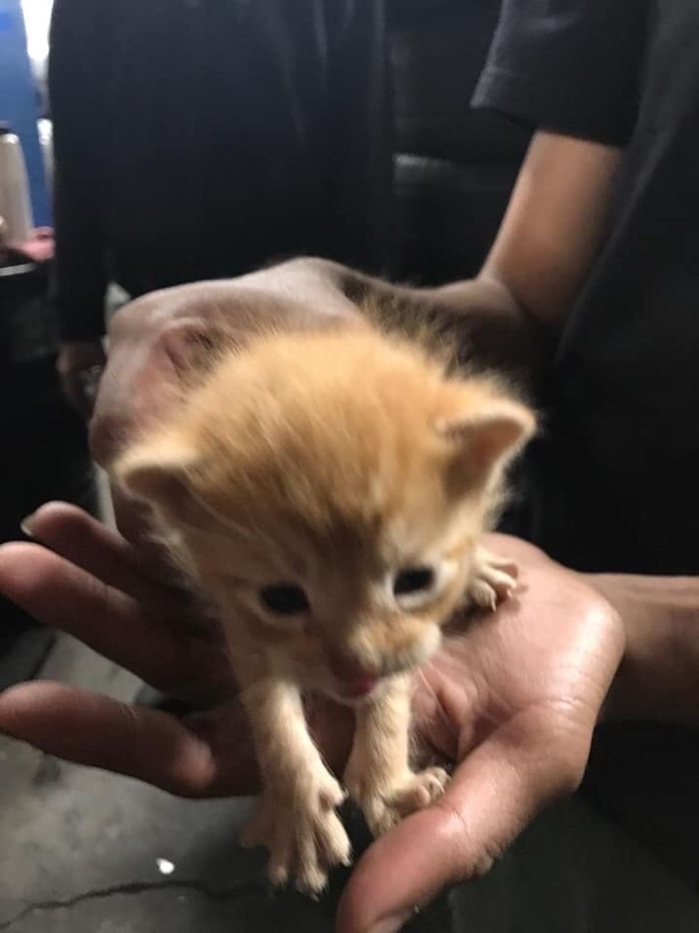She brought the kittens home that night, wiped the tire grime off their little faces, and began emergency tube-feeding them as the kittens were too weak to eat on their own.