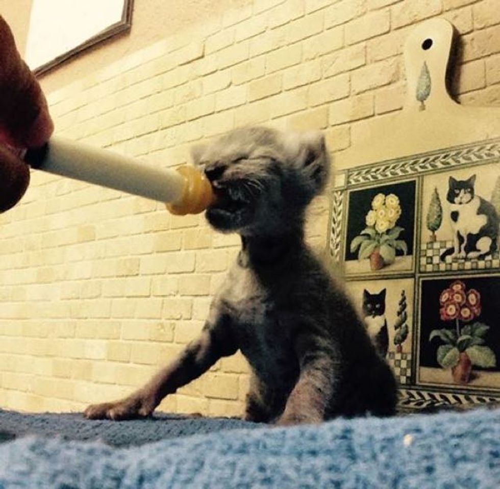 Little Yoda was given food through a syringe because he couldn't use a bottle. They fed him around the clock and the little guy started to put on weight and became stronger every day.