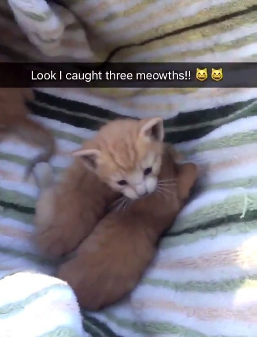 This guy found three motherless kittens when he was playing Pokémon Go in Clovis, California. The cat mama was nowhere in sight, so he decided to get help for the kittens.