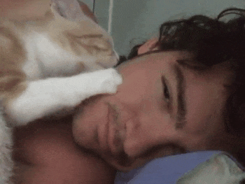 Waking up to a warm kitty cuddling up to him.