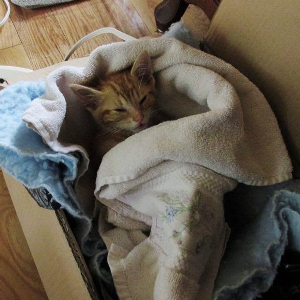 The kitten had fleas and a respiratory infection that made it difficult for him to breathe. His ears were full of mites, and he was just "a skinny little bag of bones."
