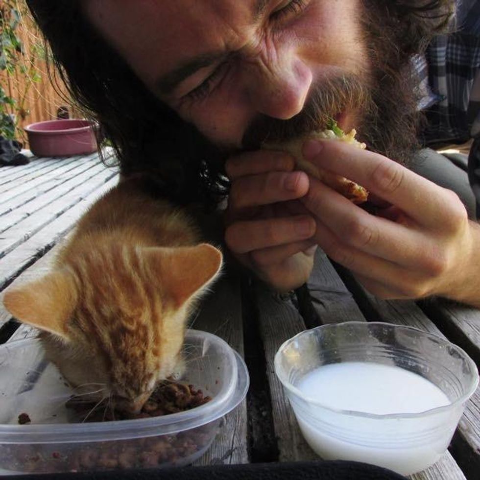 He gave the kitten antibiotics for his infection with some yogurt. "The antibiotics are hard on the digestive system so the yogurt helps counteract the negative effects.