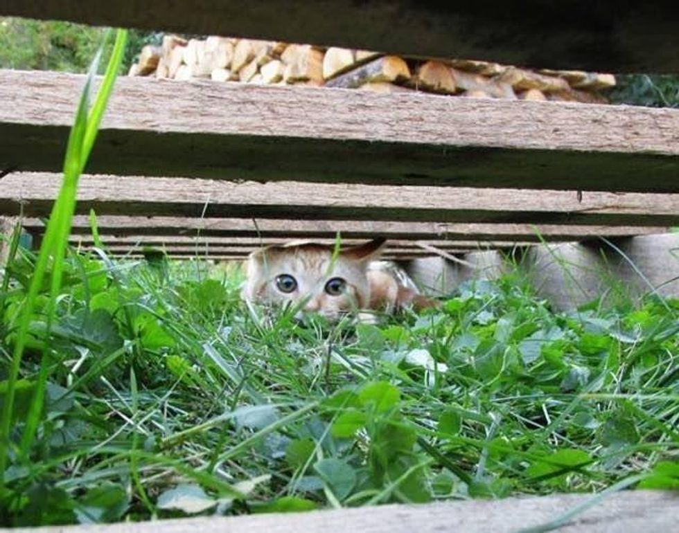 A young man spotted a little ginger kitten on the road early in the morning while he was on his way to work.