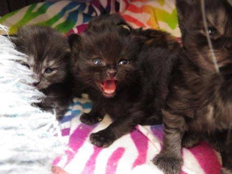 The teenagers were skimming stones at the Hutt River in Lower Hutt, New Zealand on Wednesday when they spotted a tiny two-week-old kitten hanging onto a floating log, traveling downstream. Sarah, Lilly and David sprung into action where David waded into the water to retrieve the kitten and the girls wrapped the little kitten in a hoody.