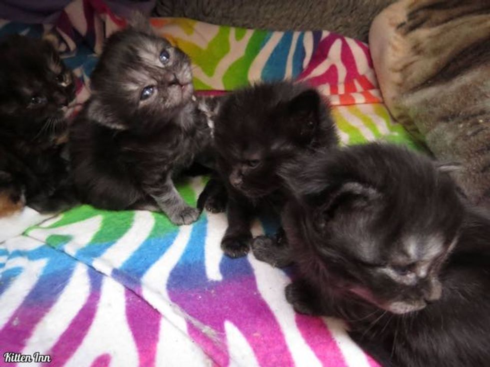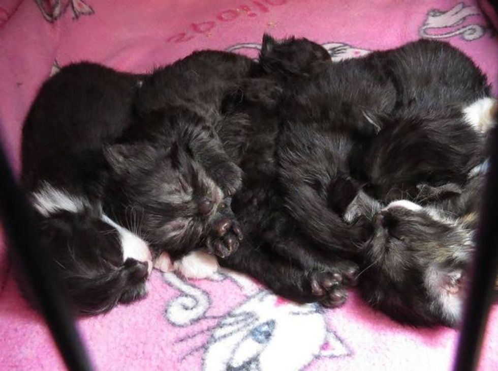 Everyone likes to feel loved and accepted! Now Woody (third from left) has a furry family to snuggle with.