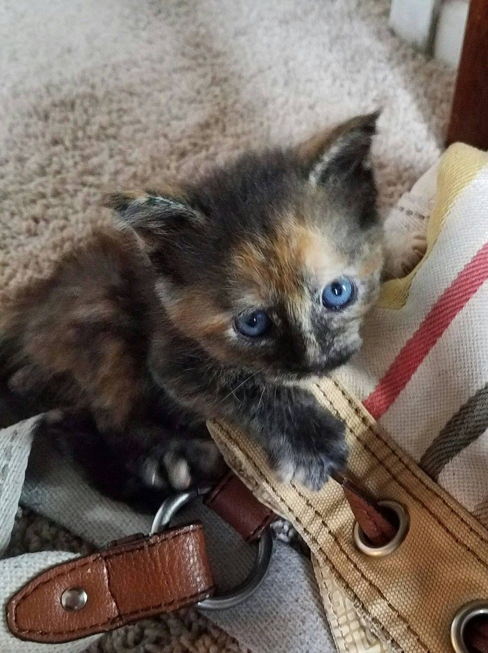 "I've never rescued a kitten this way or had one so small! This little ball of fluff came into my life. She certainly makes me smile."