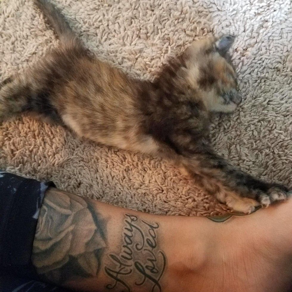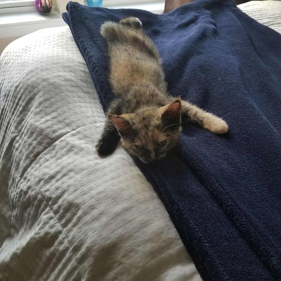 The little tortie girl had a full belly and a warm bed that night. She wouldn't leave her rescuer's side.
