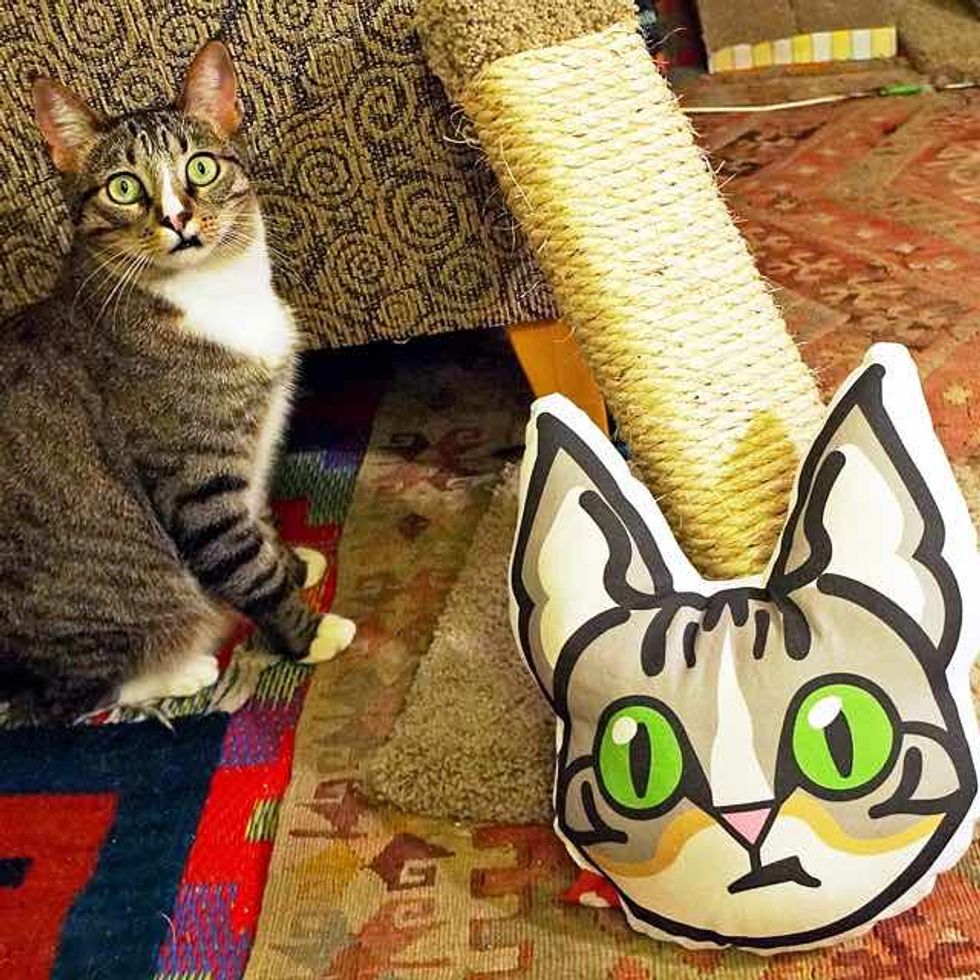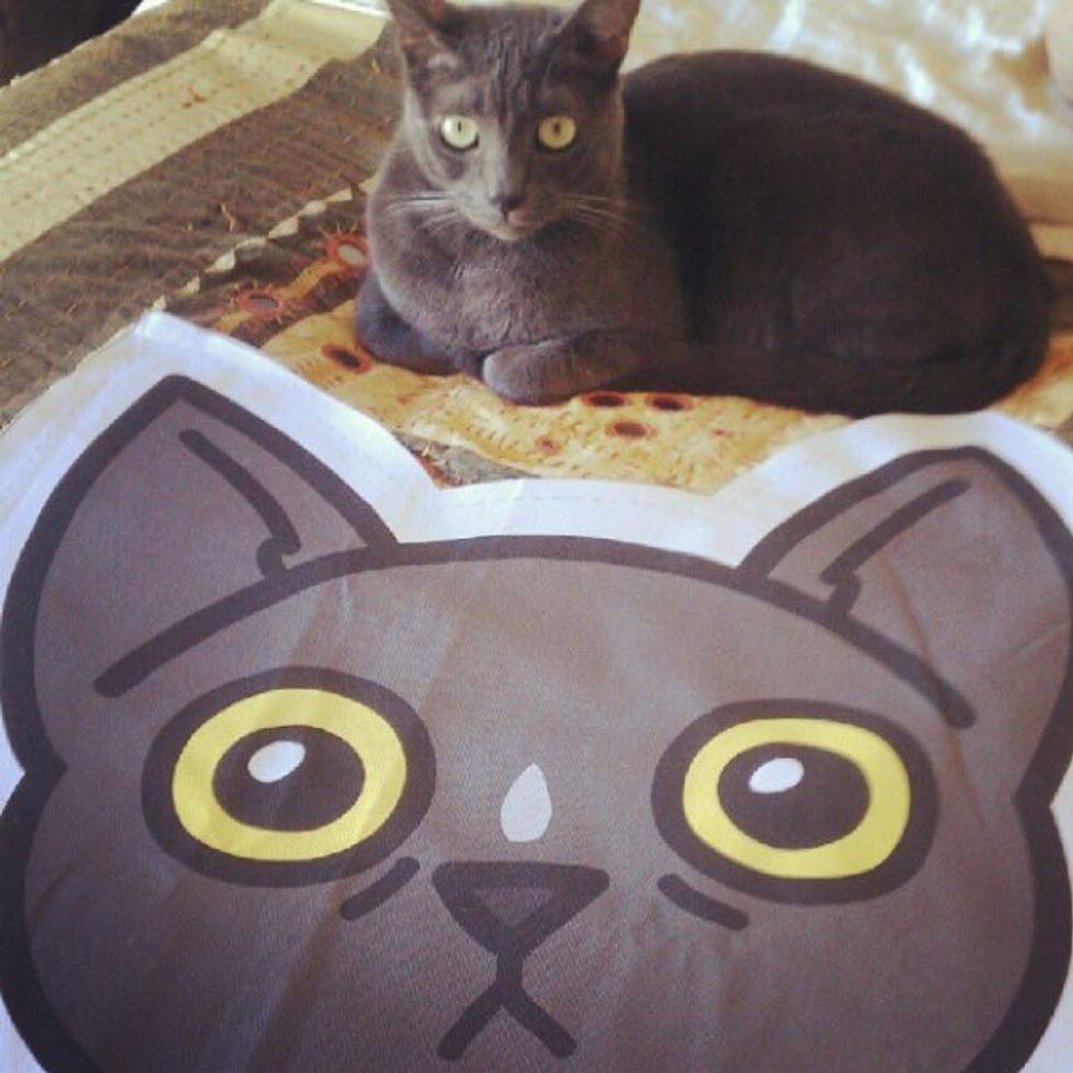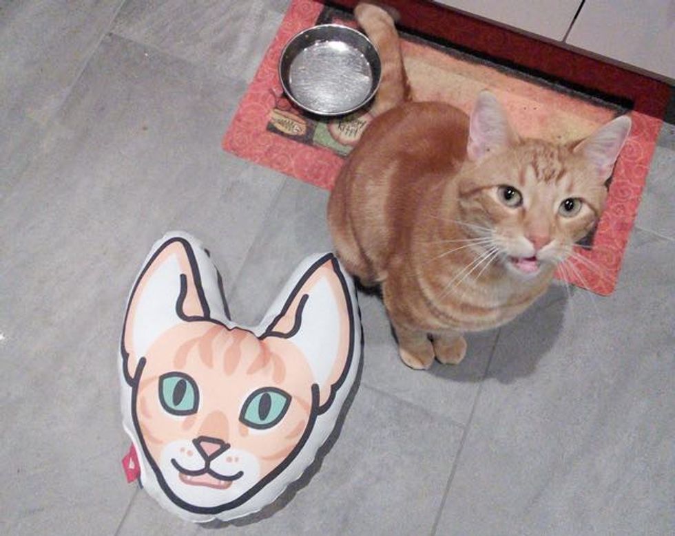 Later she began to make cat pillows for other cat lovers. They were all unique and made with love. Each pillow is designed for one special kitty with a real story behind it.