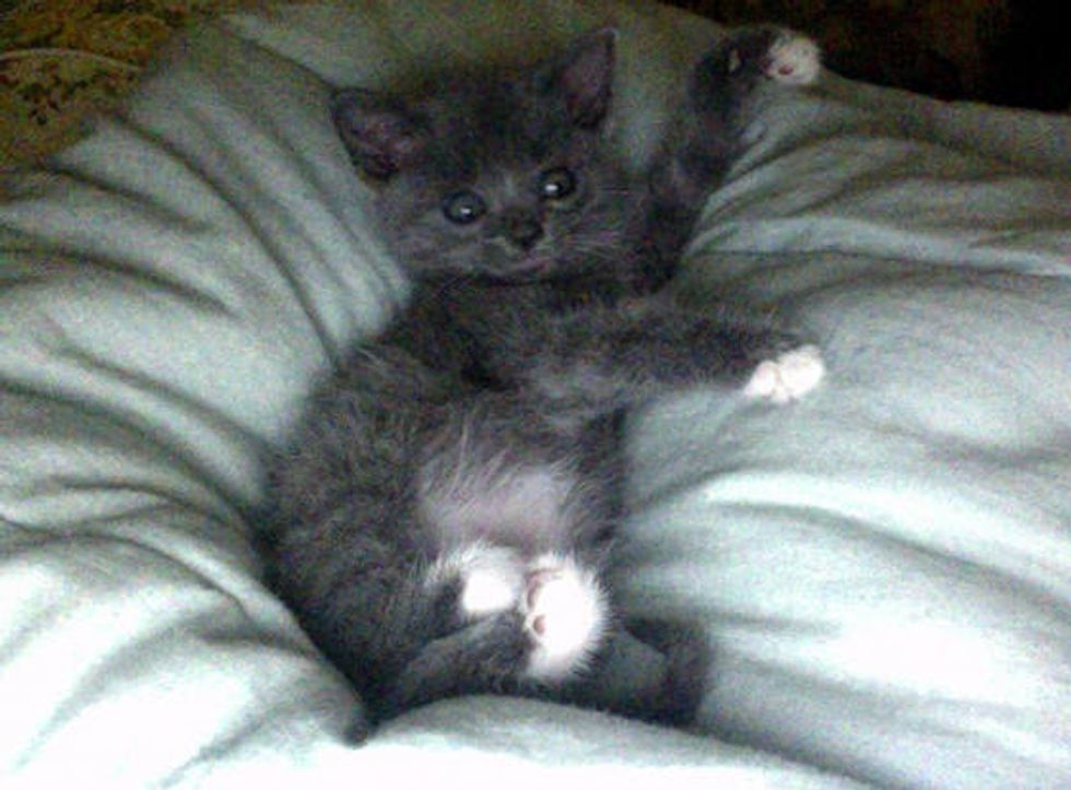 Meet Zacchaeus, the runt of a litter found at a house. Their mother cat stopped feeding them and left them until reddit user OllieChild came to the rescue. "They were living at a house where the people don't do anything about their large number of cats.... So I volunteered to take them in because these people didn't know how to care for them," she wrote via reddit.