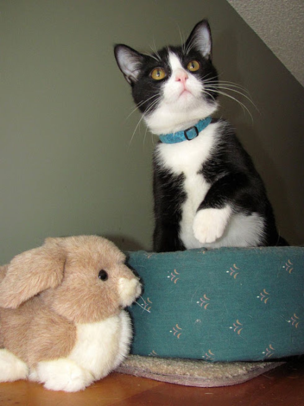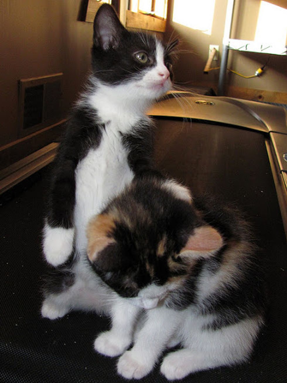 I can't even begin to describe what a wonderful lump of love this boy is. Zamboni has been devoted to Godiva since 3 days old, snuggling, eating, playing with his sister. His devotion to Godiva led to his remaining in our house, and Zamboni has been a fantastic addition to the crew.