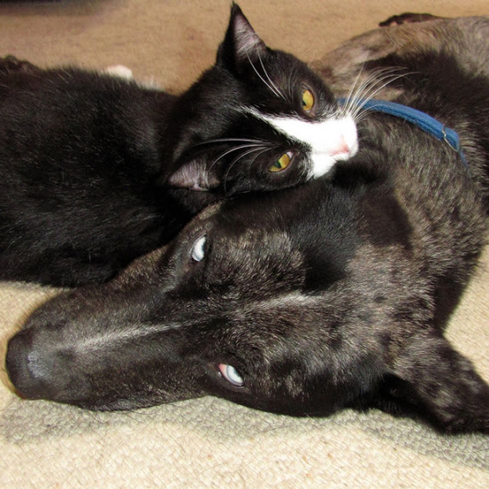 One of the amazing features of Zamboni is his open acceptance of other critters. Yes, his playful endeavors at the expense of older cats are not always welcome (he's been the biggest cat in the house since 10 months old), but he plain old doesn't understand why they don't welcome his cuddling when he is all done playing.
