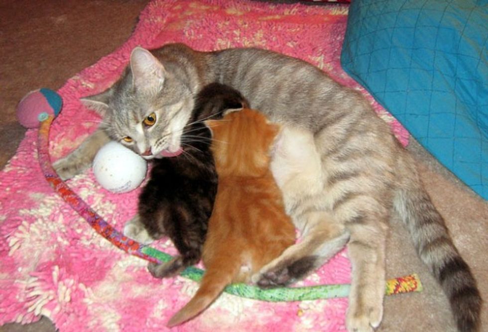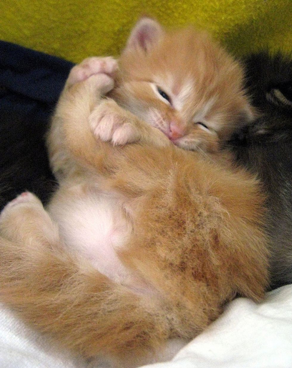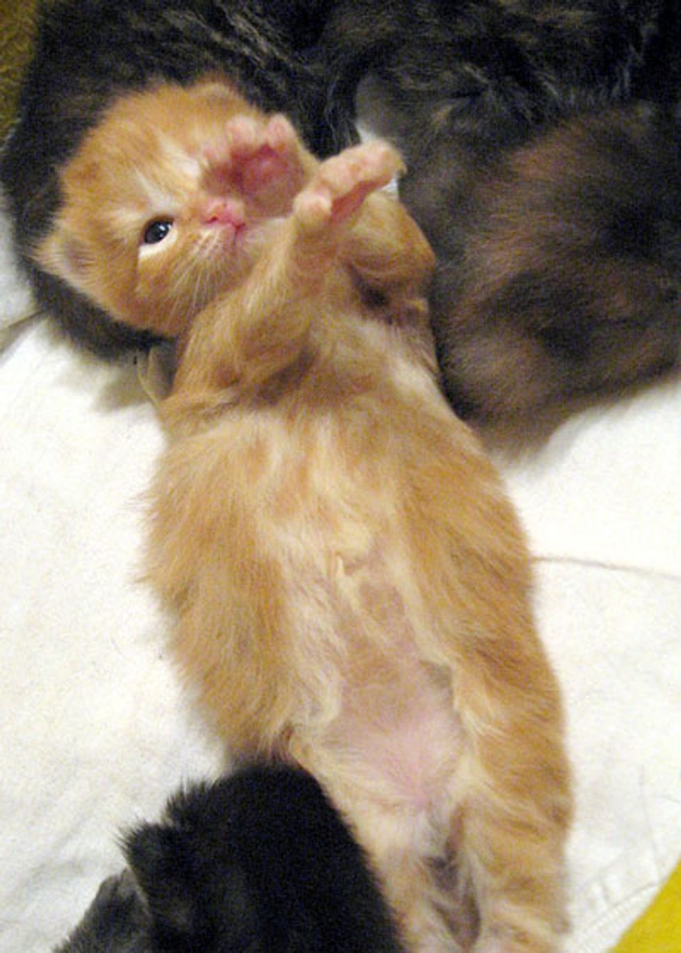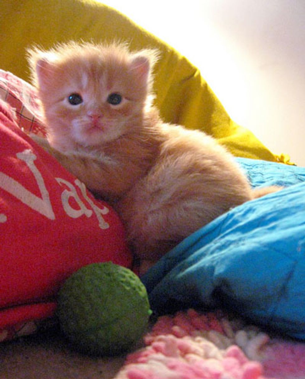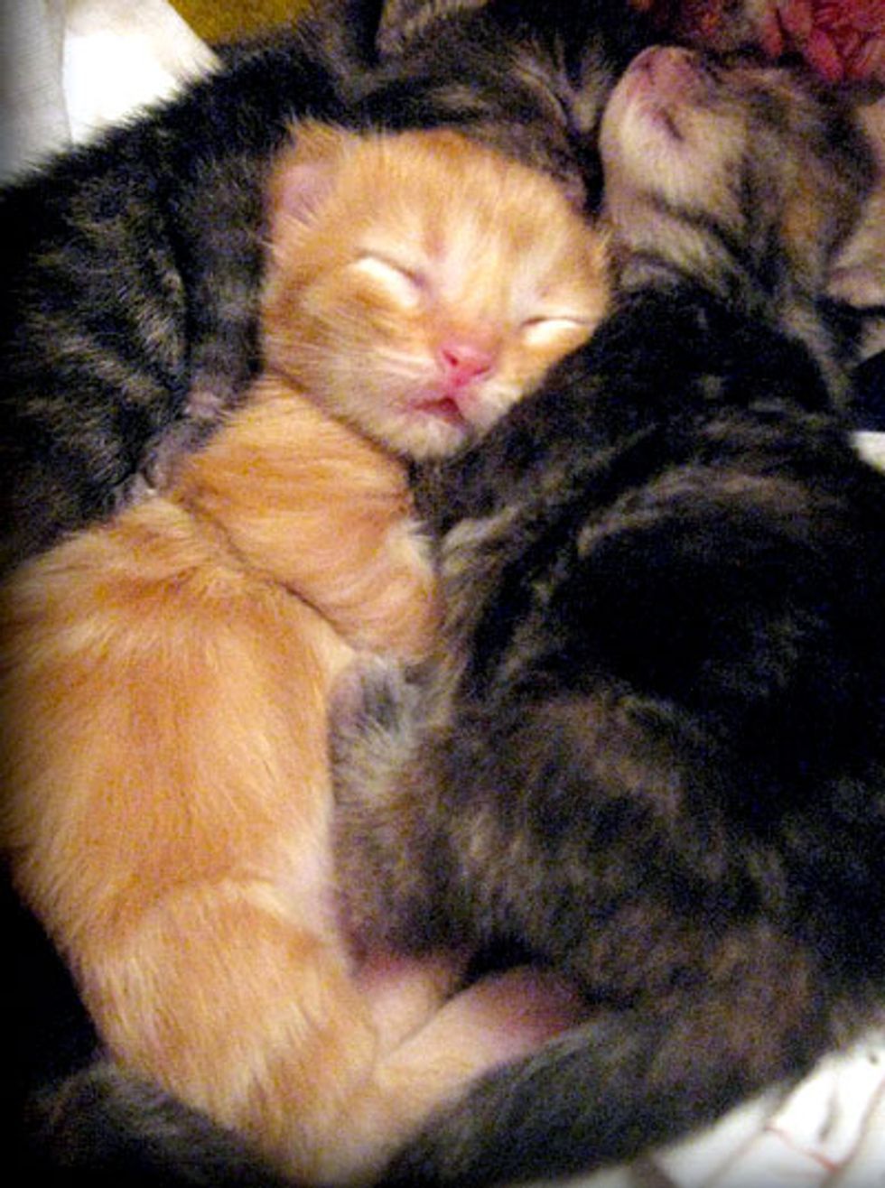 "Zippy is the only red-head in the litter of Viva's five kittens. She is usually first to wake up for dinner, and very feisty when claiming a spot on Mama's tummy.